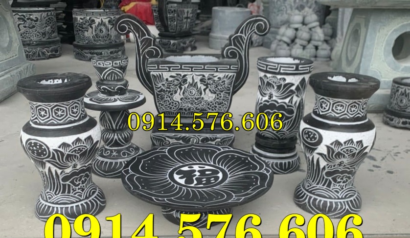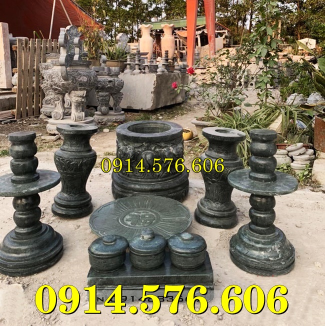 còn được gọi bát hương lư hương nhỏ lọ hoa mâm bồng đĩa đựng trái cây hay bình bông được làm từ những mẫu đá tự nhiên nguyên khối khác nhau như: đá xanh, đá trắng, đá ninh bình, đá thanh hóa, đá vàng, đá xanh rêu.