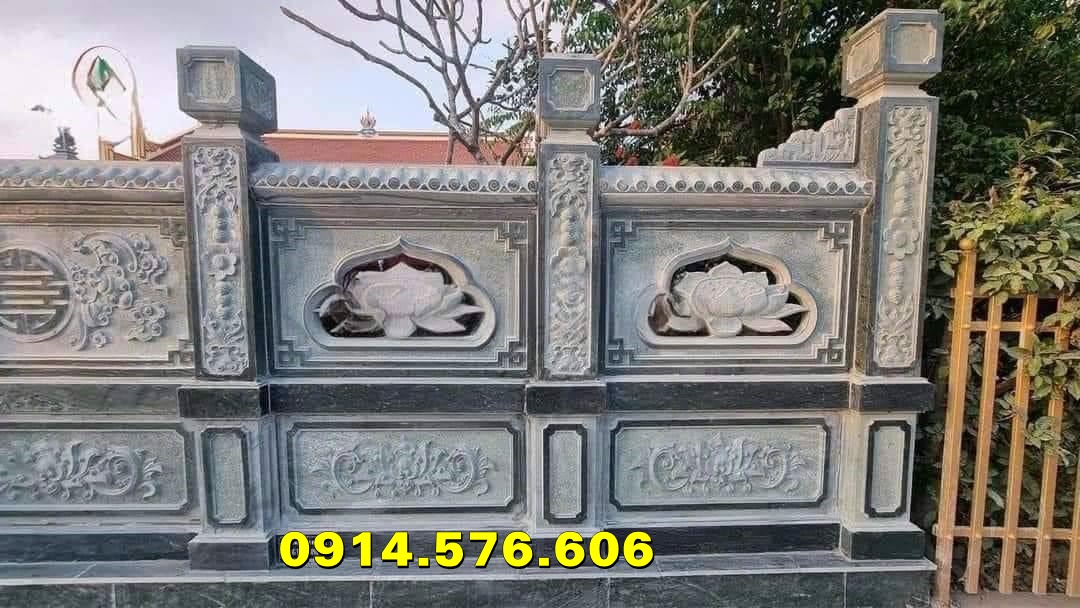 Chất liệu này được chọn nhiều để chế tạo lan can tường bao hàng rào đá cho các công trình như đền, chùa, nhà thờ, đình làng, … Ưu điểm của loại đá này là khả năng chịu đựng nhiệt độ cao, chống lại rêu mốc và mang vẻ đẹp cổ điển, trầm mặc. Đặc biệt, đá xanh đen Thanh Hóa có độ bền cao, ít cần bảo dưỡng nên vẫn giữ được vẻ đẹp theo thời gian.