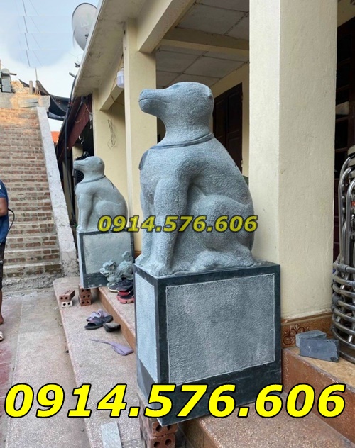 Mẫu chó đá cổ yểm trấn trạch canh cổng, còn được gọi chó yểm trấn trạch, chó cảnh canh cổng, được làm từ đá tự nhiên nguyên khối với những chất liệu đá khác nhau như đá xanh đen, đá xanh rêu, đá vàng hay đá trắng.
